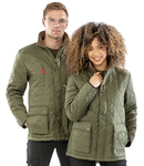 210T nylon with acrylic coating. 2x2 diamond stitching. Polyester padding. Polyester fleece lining. Showerproof and windproof. Corduroy inner collar. Full length two way zip with studded storm flap. Right chest zip pocket. Two patch pockets with stud closure and handwarmer side entry. Rear studded saddle vents. Back panel detail. Bound open cuffs. Open hem. Cut out label.